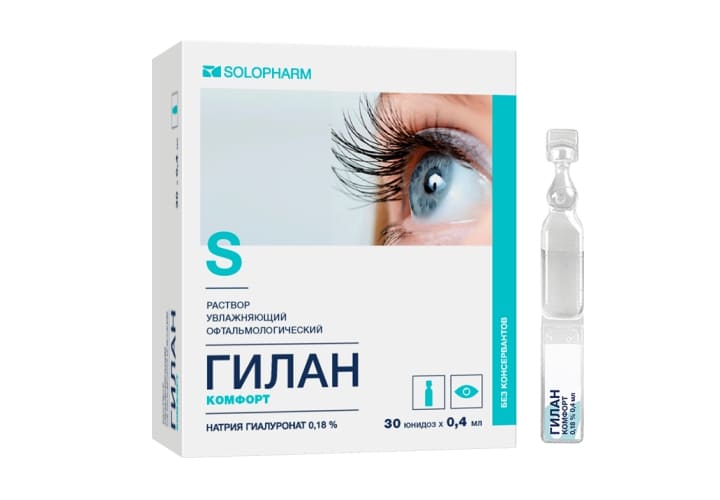 Увлажняющие капли для глаз Гилан Комфорт на основе 100% гиалуроновой кислоты в уникальном OSD флаконе: