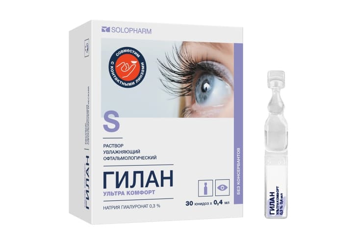 Гилан Ультра Комфорт закапывают по 1–2 капли в конъюнктивальный мешок, по мере необходимости до 6 раз в сутки.