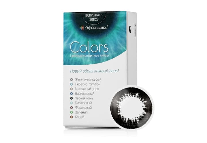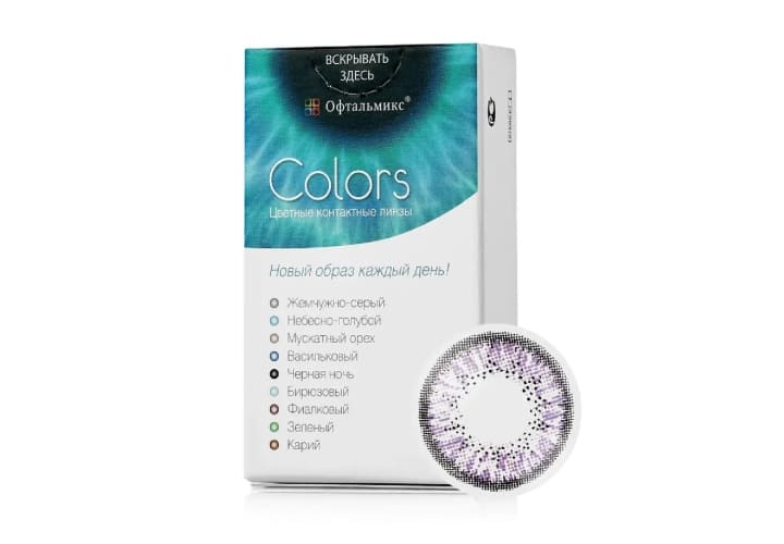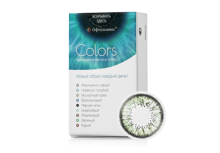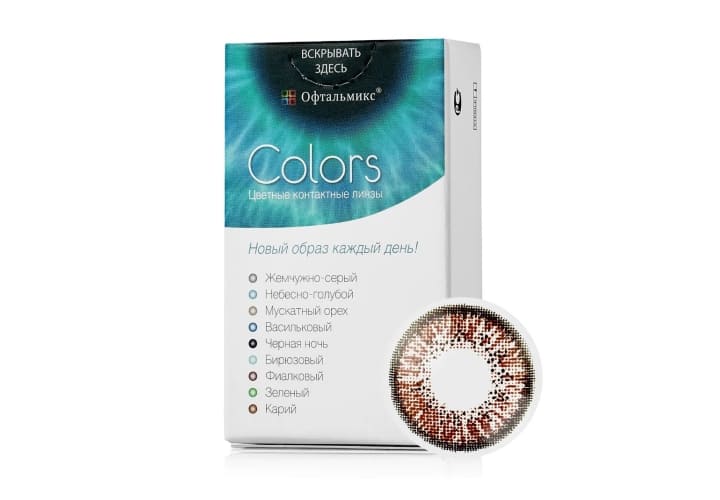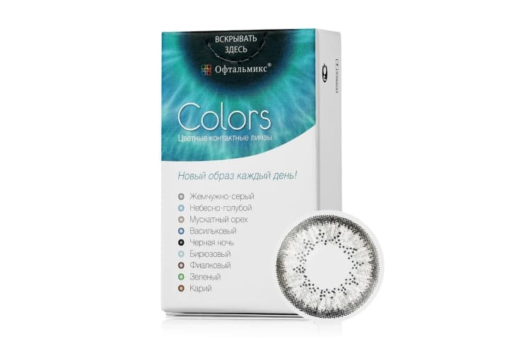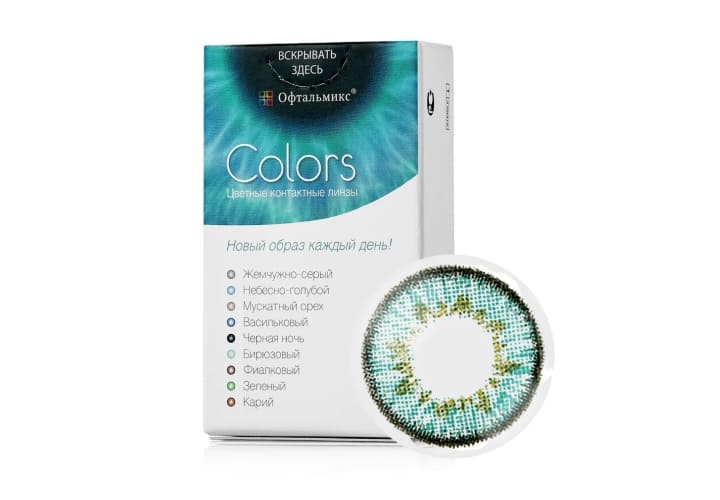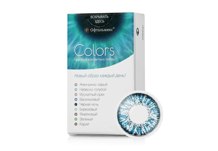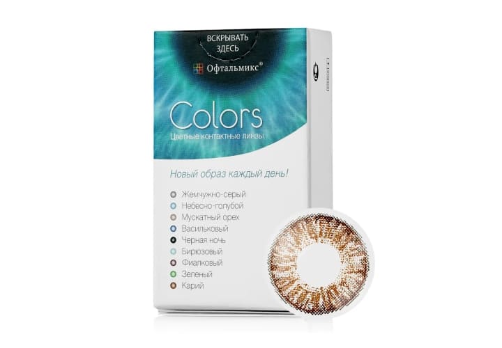 Офтальмикс Colors являются квартальными контактными линзами дневного режима ношения. Оптика производится из Polyhema — материала, обеспечивающего оптимальные показатели влагосодержания для комфортного ношения на протяжении дня. Офтальмикс Колорс — цветные линзы, полностью меняющие оттенок радужки. Производитель предлагает 8 вариантов цветов для темных и светлых глаз.