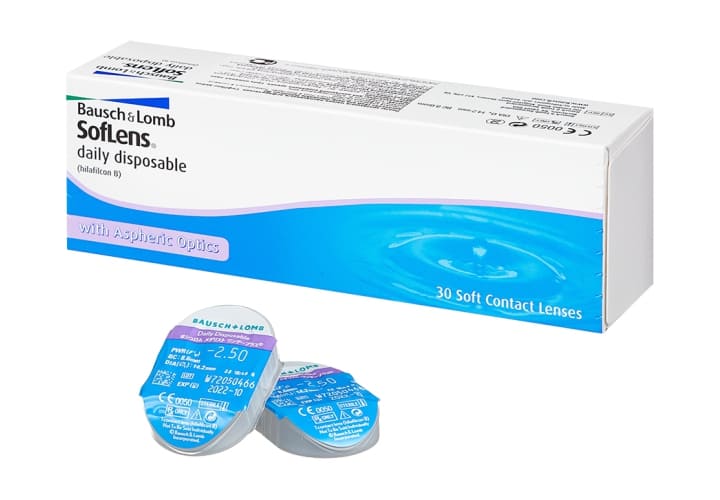 Купить ежедневные контактные линзы Soflens Daily Disposable от Bausch and Lomb можно для устранения дальнозоркости, близорукости, некоторых степеней астигматизма. Диапазон диоптрий составляет от – 9.00 до + 2.50. Перед покупкой проконсультируйтесь с врачом-офтальмологом.