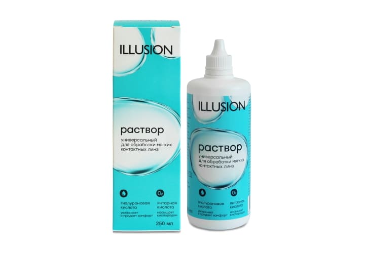 Раствор ILLUSION работает на максимум: очищая, увлажняя, и сохраняя линзы в контейнере, обеспечивая безопасное и комфортное ношение.