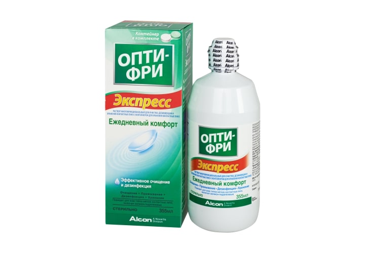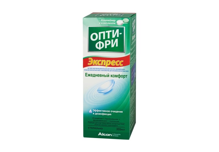 Многоцелевой раствор Опти-Фри Экспресс – это эффективное средство для дезинфекции, очистки и хранения всех типов мягких контактных линз, в том числе – силикон-гидрогелиевых. Производитель – международный концерн Alcon.